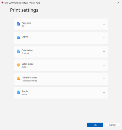 uniFLOW Online adds additional functionality to Universal Print by Microsoft and Chromebook™ printing, so organizations profit from enhanced document security and increased user productivity. Independent of the job submission pathway, finishing options for secure print jobs can be altered at the device.
